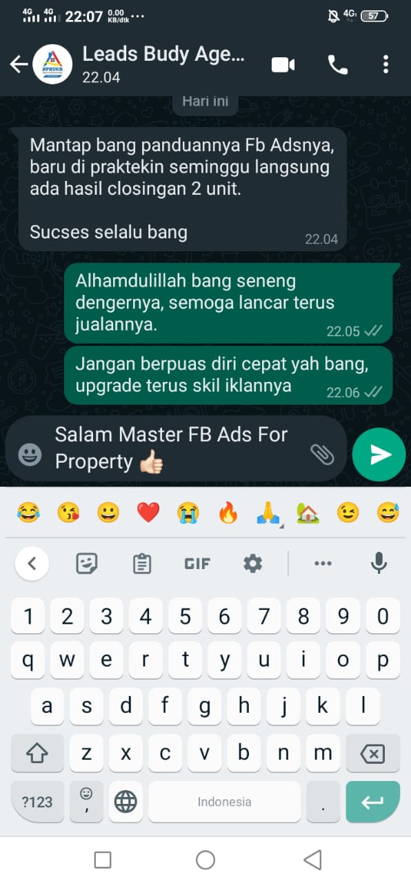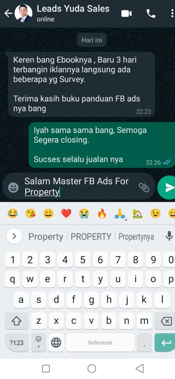Setelah belajar dan mengalami banyak kegagalan Hingga boncos puluhan juta biaya iklan dalam 1 bulan, dan akhirnya saya menemukan pola sukses untuk menjual property melalui Facebook Ads. Hasilnya luar biasa! Saya menigkatkan penjualan property saya dan berhasil mendapatkan komisi penjualan puluhan hingga ratusan juta rupiah dalam satu bulan. Ajaib Peningkatan Penjualan saya naik hingga 5x lipat dari sebelumnya.